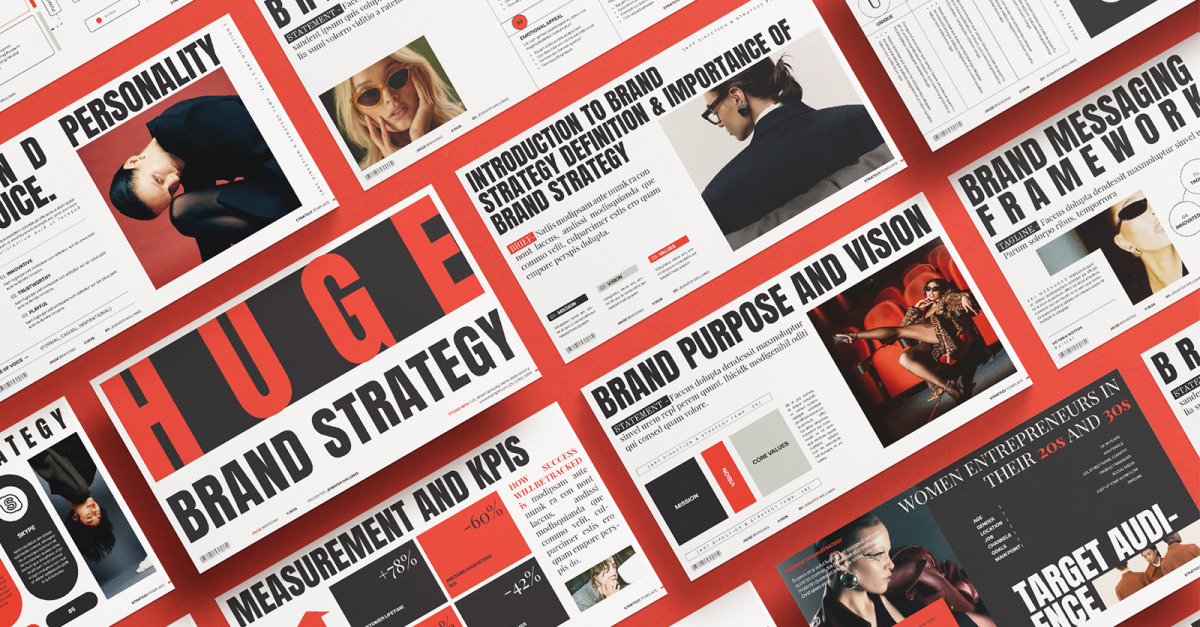 Hem Google Slaytlar'da hem de diğerlerinde kullanılmak üzere tasarlanmıştır. HUGE, editoryal inceliği modern bir dokunuşla birleştirir; netlik, yaratıcılık ve güçlü marka düşüncesi bekleyen müşteriler için mükemmeldir. Şablon , hedef kitle analizi, marka değerleri, müşteri kişileri, mesajlaşma, içerik planlama, kampanya stratejisi ve daha fazlası için slaytlar içerir.