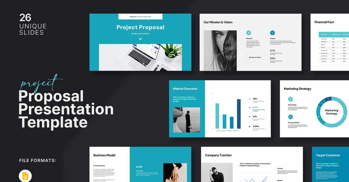 Proje Teklifi Google Slaytlar Sunum Şablonu, logonuzu, görsellerinizi eklemenizi, marka renklerinizi ve tipografinizi düzenlemenizi sağlar ve hazırsınız. Zaman kaybetmeyin, tüm zor işi sizin için biz yaptık.