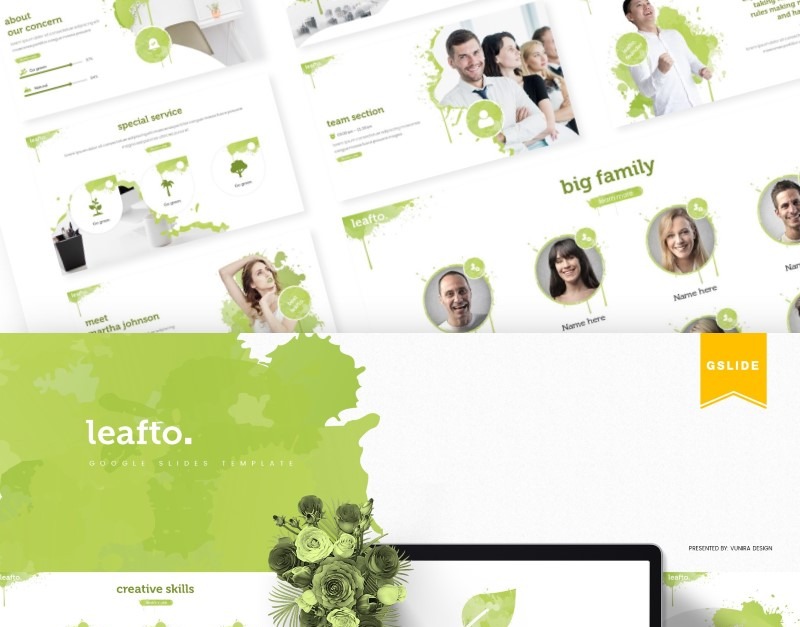 Bu **Yaprak | Google Slaytlar Şablonu**- Hemen edinin!, Tüm ticari veya kişisel ihtiyaçlar için harika bir Google Slaytlar şablonu.