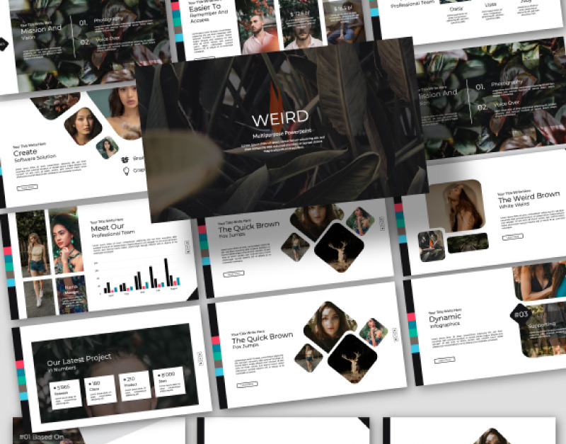 Weird Creative Presentation, her slaydın sevgi ve detaylara dikkat edilerek oluşturulduğu profesyonel, ultra modern ve benzersiz bir tasarıma sahiptir. Çok Amaçlı Yaratıcı Yaratıcı Şablon Sunumudur, her tür sunum için kullanılabilen çok amaçlı bir Sunum şablonudur: iş, portföy, kurumsal, markalaşma, reklam vb.