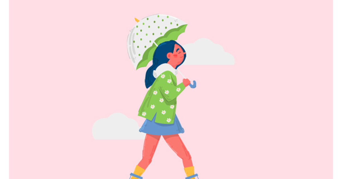 Şemsiye Arka Plan Çizimi ile Yürüyen Bedava Kız