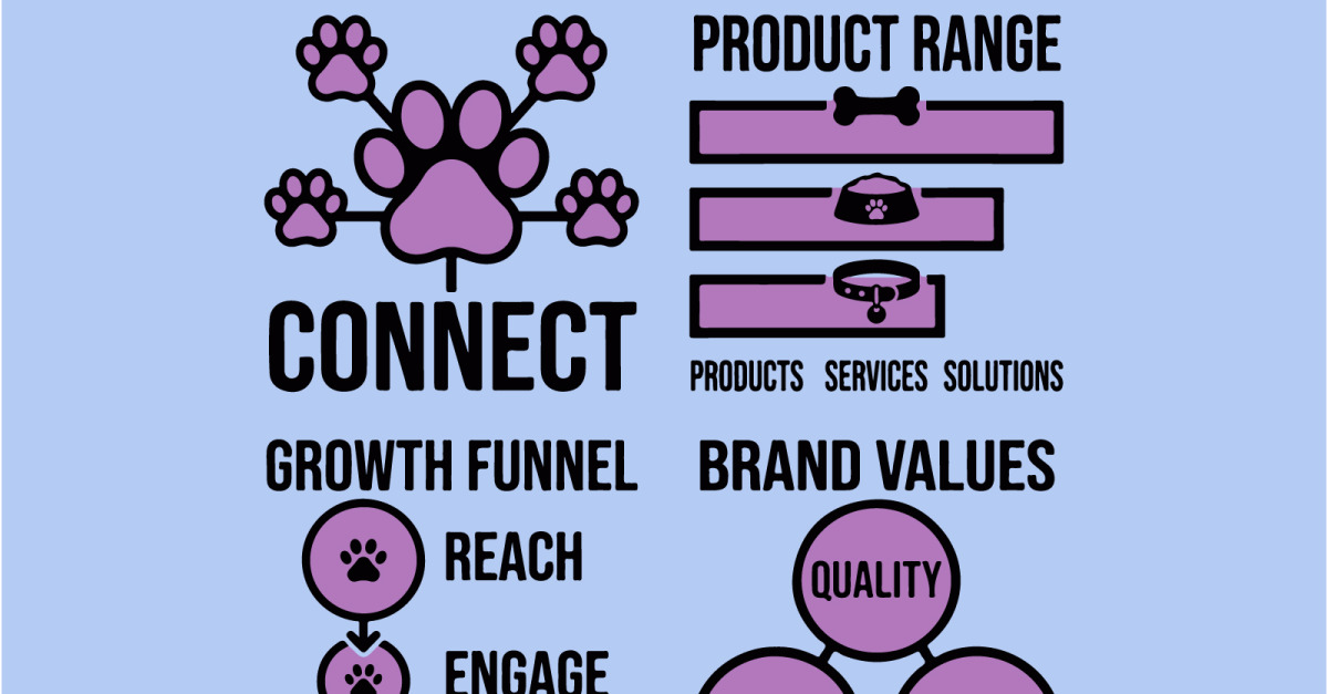 Evcil Hayvan İşletmesi Pazarlama Bilgi Grafiği: Marka Değerleri ve Büyüme Hunisi