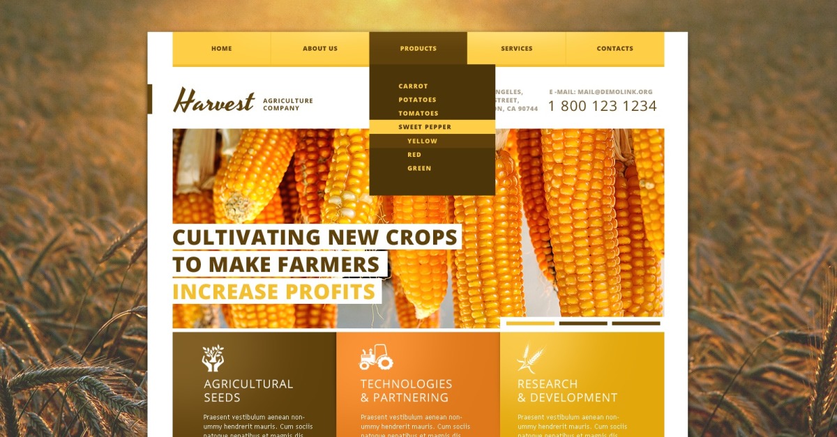 Bu Tarım Ürünleri web sitesi tasarım şablonu Duyarlıdır