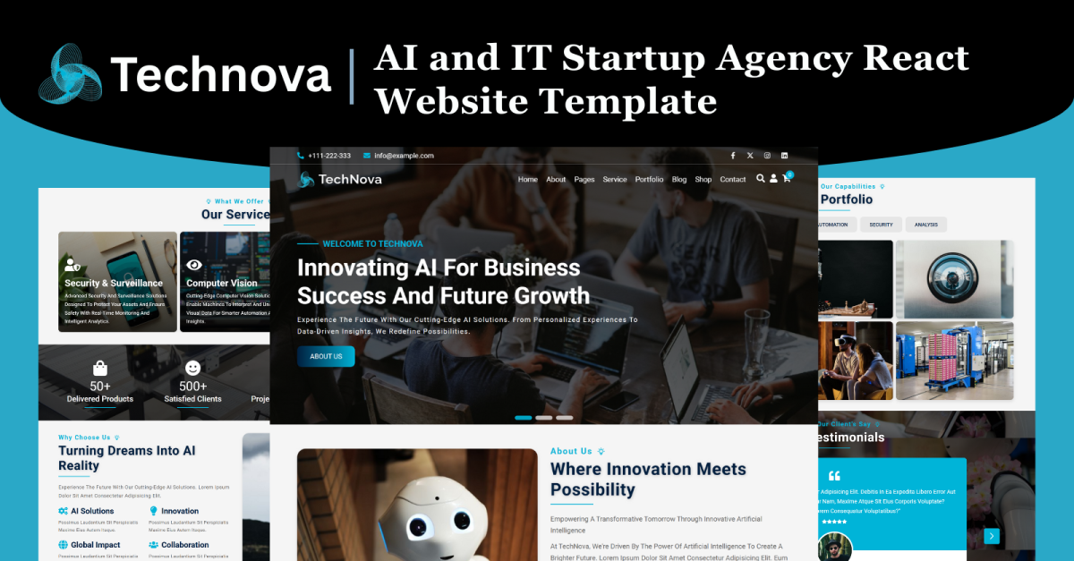TechNova - AI ve BT Girişim Ajansı React Web Sitesi Şablonu