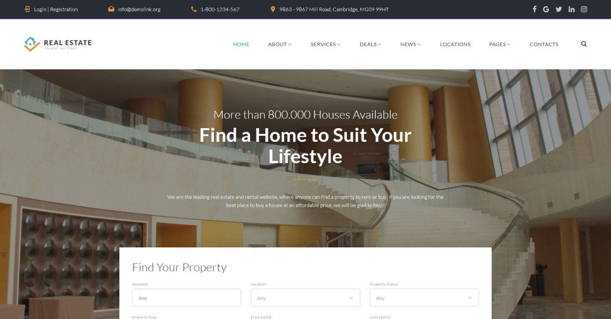 Emlak - Verimli Konut ve Konaklama Çok Sayfalı HTML Web Sitesi Şablonu