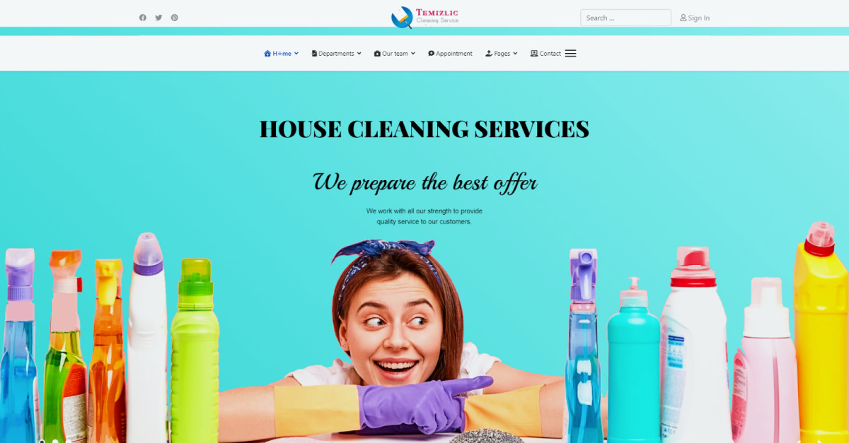 Bu çalışma Temizlik Firmaları, Temizlik ürünleri veya bakım işi yapan firmalar için ideal ve şık bir tasarımdır. Bu hazır tasarımı kullanarak dakikalar içerisinde işletmenize uygun profesyonel bir web sitesine sahip olabilirsiniz. Temizlik Firmanıza ait bilgileri, müşterilerinize sunduğunuz ürün ve hizmetleri detaylı bir şekilde görüntülersiniz. Ekibiniz hakkında bilgi verebilir, müşterinizin size olan güvenini artırabilirsiniz. Mobil uyumlu yapısı sayesinde web sitenize her yerden ve her platformdan ulaşabilirsiniz. Tamamen kullanıcı dostu yönetim arayüzü sayesinde dilediğiniz içeriği ekleyebilir, sitenizi istediğiniz zaman ve kimseye ihtiyaç duymadan güncelleyebilirsiniz. İhtiyacınız olan profesyonel özellikleri web sitenizde birleştirebilirsiniz.