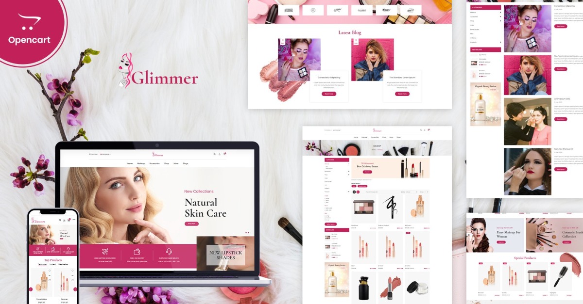 Glimmer , çevrimiçi kozmetik, makyaj, güzellik, ruj, cilt bakımı, moda, giyim ve çok amaçlı mağazalarınız için en iyi çözüm olacak modern, şık ve tamamen duyarlı bir OpenCart şablonu. Glimmer - Güzelliğe Duyarlı OpenCart Şablonu, renk kombinasyonuyla iyi ve profesyonel görünüyor.