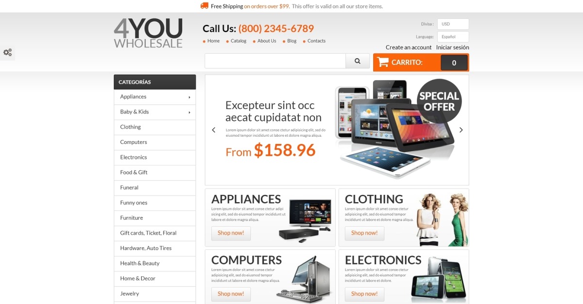 Bu, Örnek Veri Yükleyici içeren Toptan Satış Dizini PrestaShop şablonudur