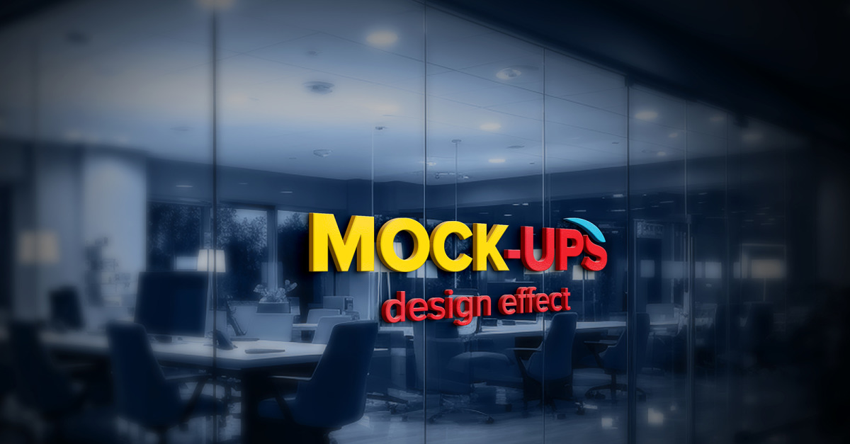 ofis cam duvarında 3 boyutlu logo maketi psd