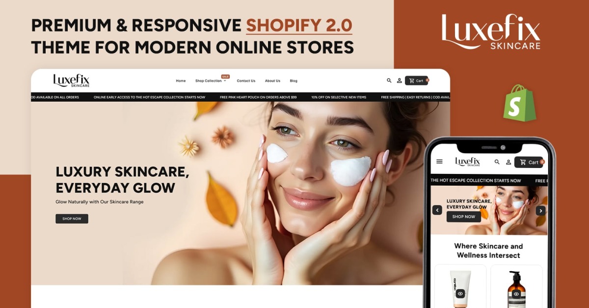 Luxefix - E-ticaret için Duyarlı Güzellik ve Cilt Bakımı Shopify Teması
