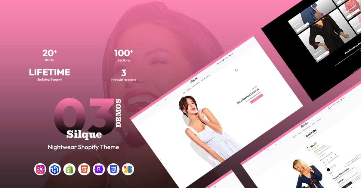 Silque , zarafet, hız ve yüksek dönüşüm oranları talep eden modern markalar için tasarlanmış , yapay zekaya hazır, üst düzey bir Shopify temasıdır . Özellikle gecelik, iç çamaşırı, moda ve lüks yaşam tarzı mağazaları için tasarlanan Silque, duyusal estetiği güçlü e-ticaret işlevselliğiyle birleştirerek, karlı bir çevrimiçi mağazayı zahmetsizce başlatmanıza ve büyütmenize yardımcı olur.