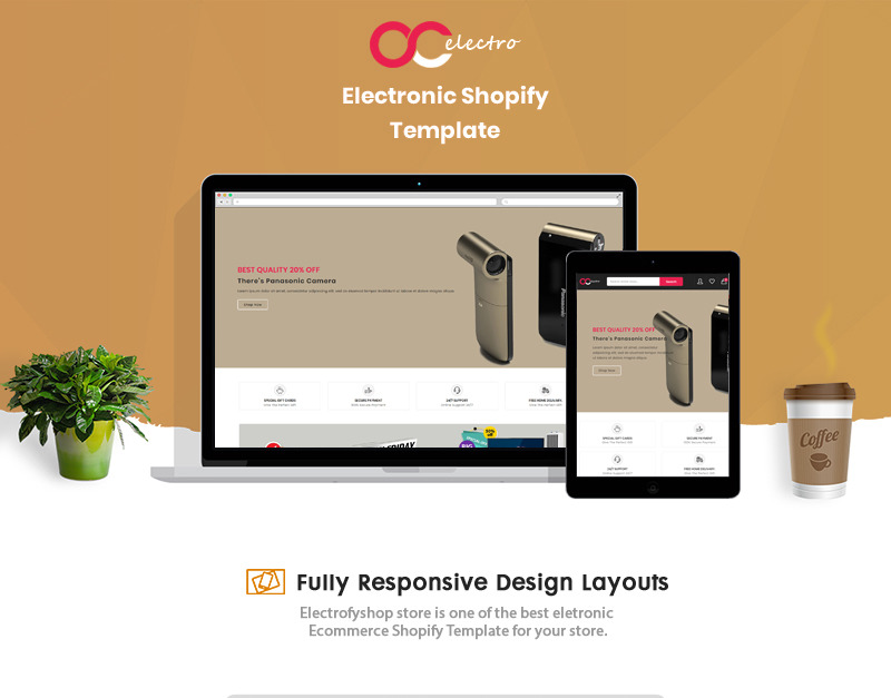 Electrofyshop Shopify e-Ticaret Şablonu, özellikle elektronik cihazlar için yapılmıştır ancak güzellik, ayakkabı, çocuk modası, güzellik aksesuarları, aletler, otomobil parçaları ve en ünlü moda mağazaları gibi diğer mağazalar için de uygundur.