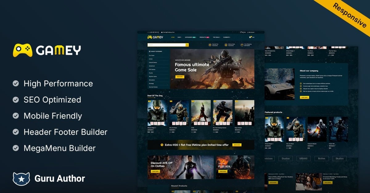 Gamey - Online Oyun Elementor WooCommerce Teması
