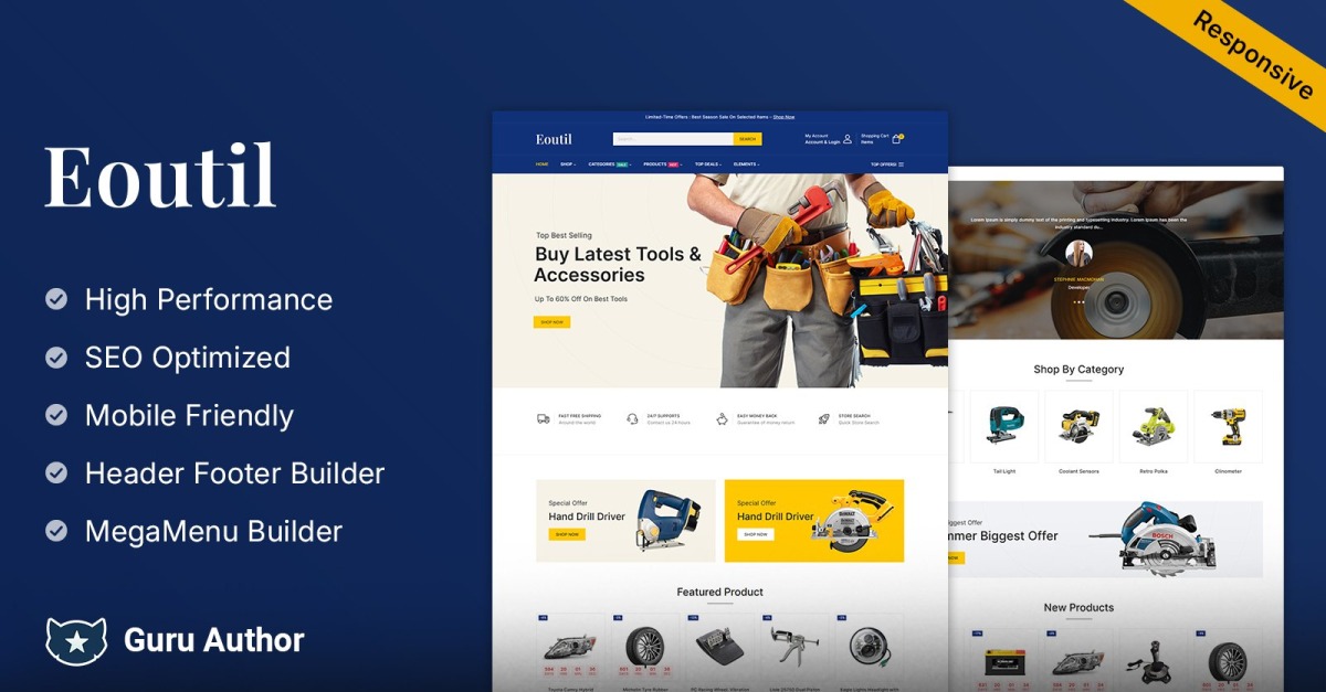 Eoutil - Araçlar ve Mega Mağaza Elementor WooCommerce Teması