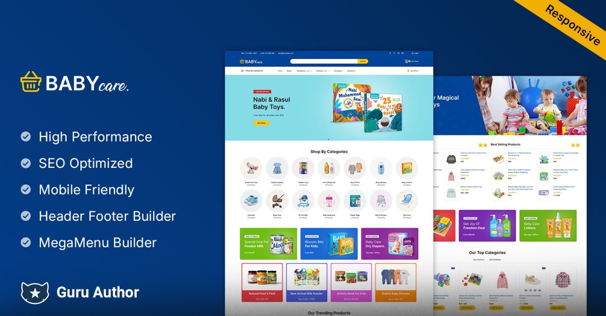 BabyCare'in Çocuk Mağazası WooCommerce WordPress teması, çocuk kıyafetleri, organik yiyecekler, market ürünleri, moda, teknoloji, gadget'lar, spor ayakkabılar, ayakkabılar ve mobilyalar dahil olmak üzere hayal edebileceğiniz her şeyi satan çevrimiçi mağazalar için uygundur. güvenilir, esnek ve kullanımı basit Bu ifadeler BabyCare'in tanımını verir. Nasıl kod yazılacağını bilmeseniz bile, yine de basitçe bir web sitesi oluşturabilirsiniz. Hemen kabul etmeye hazır mısın? Çekici tasarım bileşenlerine sahip bir dizi harika sayfa oluşturdum. Mükemmel BabyCare web sitesi tasarımı ile şirketinize uyan bir web sitesi yapabilirsiniz!