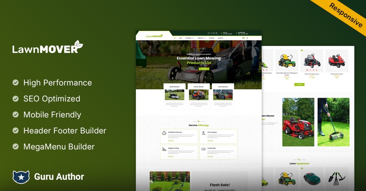 LawnMover'ı Tanıtıyoruz – Çim Biçme ve Bahçe Bakım Hizmetleri Teması. LawnMover, çim biçme, peyzaj düzenleme ve bahçe bakım hizmetleri sunan işletmeler için mükemmel, modern ve tamamen duyarlı bir WooCommerce temasıdır. Kullanım kolaylığı ve esneklik düşünülerek tasarlanan bu tema, öne çıkan bir çevrimiçi varlık oluşturmak isteyen bahçe bakım profesyonelleri için kusursuz bir çözümdür.