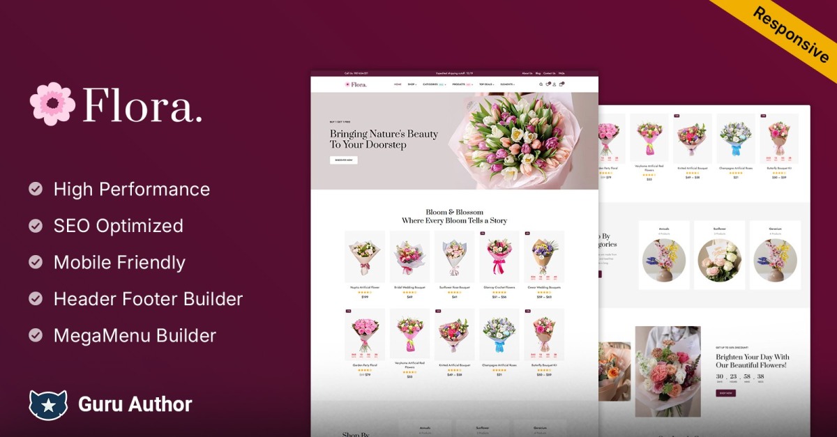 Flora - Çiçekçi ve Çiçekçi WooCommerce Teması ile büyüleyici bir çevrimiçi varlık yaratın ve işinizin büyümesini izleyin!