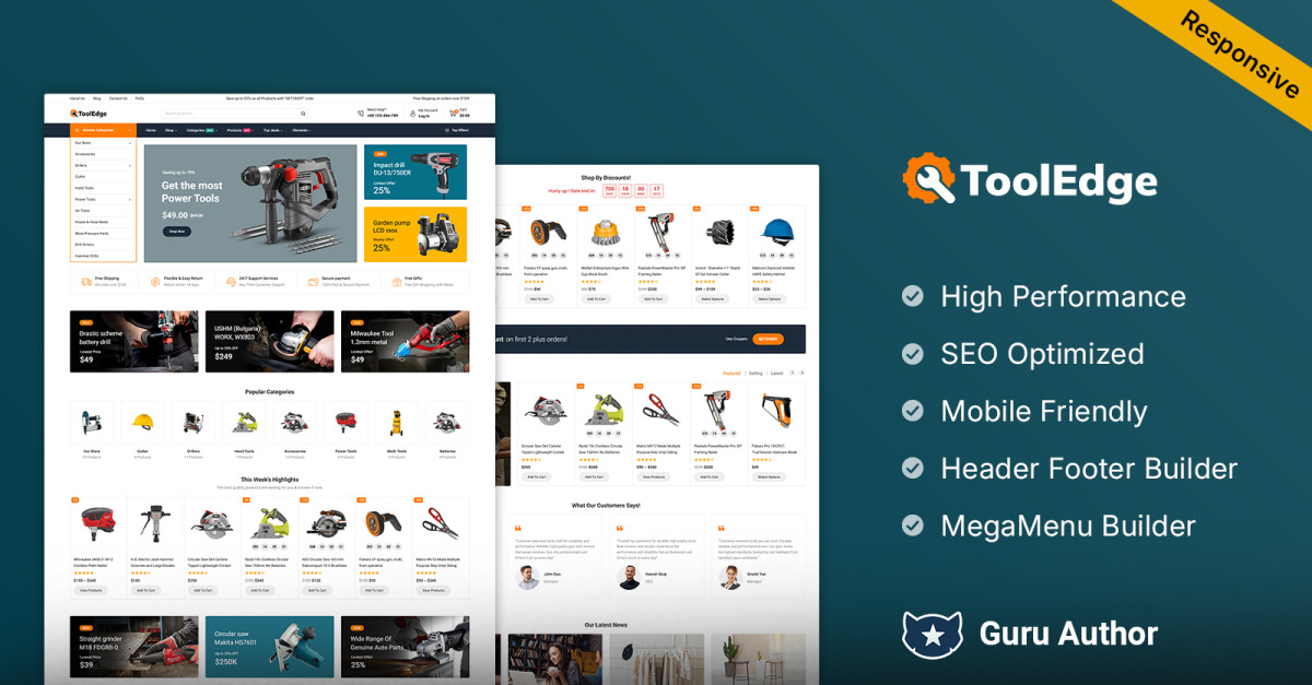 Elementor üzerine kurulu Tooledge, kolay sürükle-bırak özelliğiyle tasarım üzerinde tam kontrol sağlar. Kodlama becerisine gerek yok; parmaklarınızın ucunda sınırsız yaratıcılık. Tema, cesur tipografi ve iyi yapılandırılmış ürün sayfalarıyla temiz ve sezgisel bir düzen sunarak müşterilerinizin tüm cihazlarda sorunsuz bir alışveriş deneyimi yaşamasını sağlar.