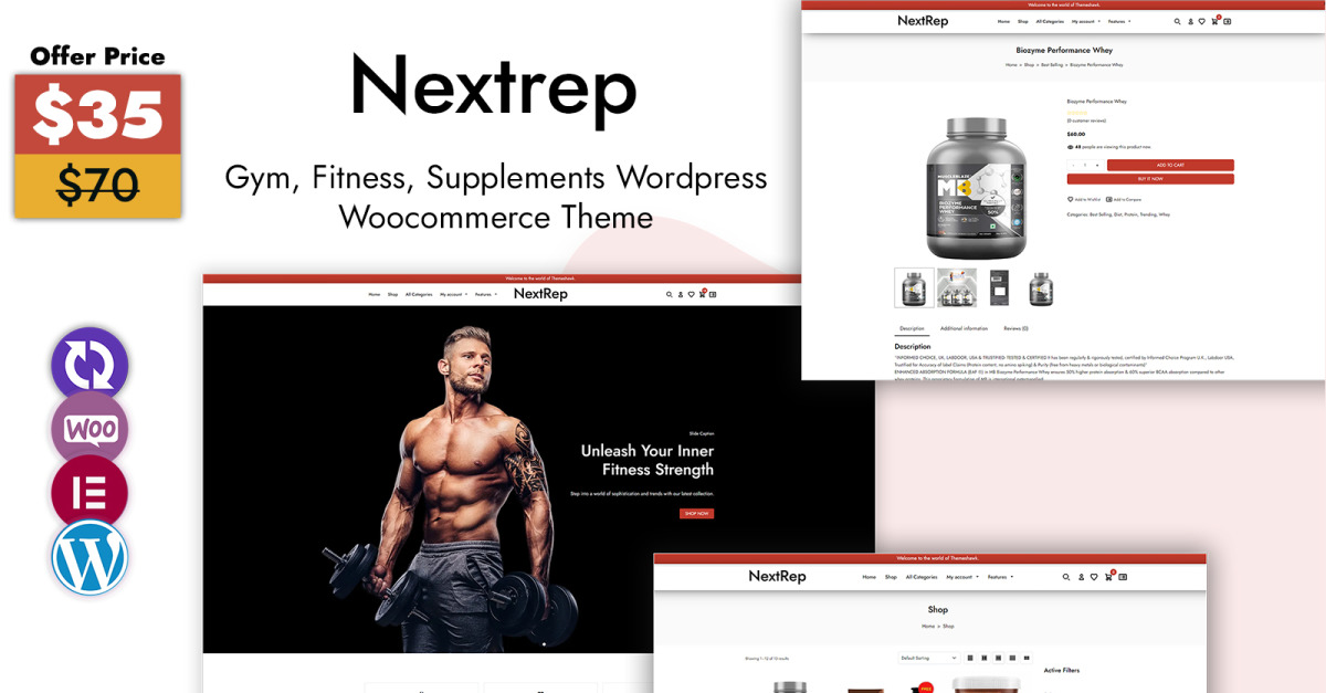 Spor salonları, fitness merkezleri, kişisel antrenörler, yoga stüdyoları ve takviye mağazaları için tasarlanmış premium bir WordPress WooCommerce teması olan NextRep ile fitness markanızı bir üst seviyeye taşıyın. Elementor entegrasyonu , WooCommerce uyumluluğu ve fitness odaklı tasarımıyla NextRep, güçlü bir çevrimiçi varlık oluşturmanız için stil, performans ve esnekliğin mükemmel dengesini sunar.