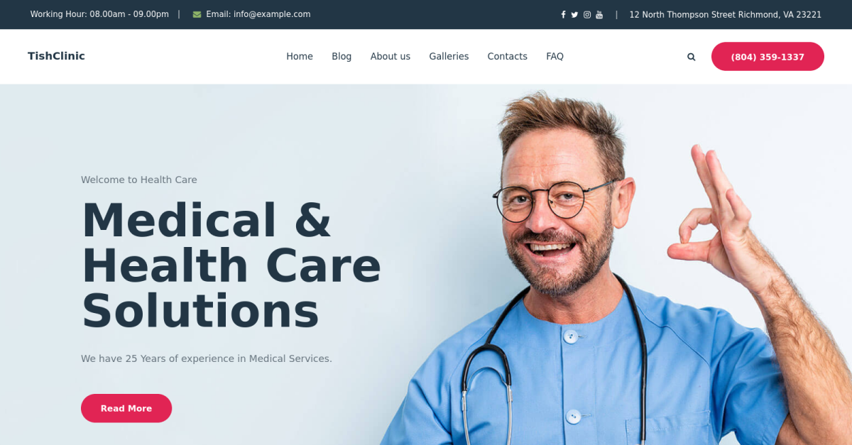 TishClinic, Medical Clinic Web Siteleri için kullanılmak üzere tasarlanmış bir WordPress Temasıdır.