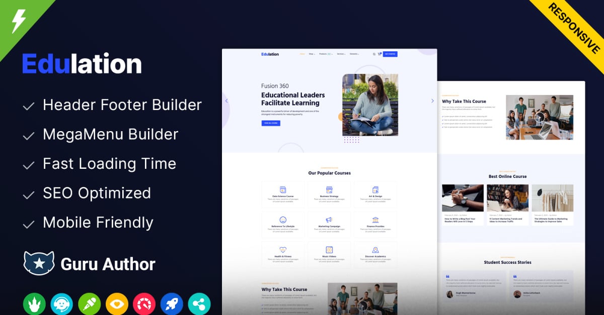 Temiz düzeni ve sezgisel tasarımıyla Edulation, aşağıdakiler de dahil olmak üzere çok çeşitli eğitim tabanlı web siteleri için uygundur: