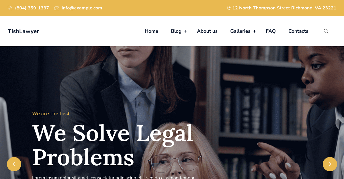 TishLawyer, Avukat ve Avukat web siteleri için özel olarak tasarlanmış tasarım ve önceden oluşturulmuş içeriğe sahip bir WordPress temasıdır.