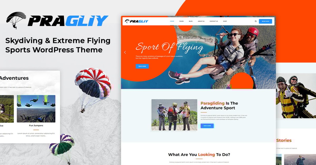 Pragliy - Skydiving, Yamaç Paraşütü ve Macera WordPress Teması