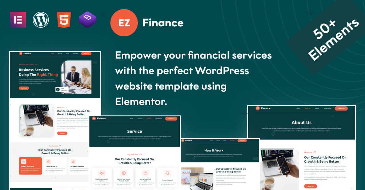 EZ Finance: Elementor'u kullanarak WordPress duyarlı şablonuyla finansal hizmetlerinizi güçlendirin.
