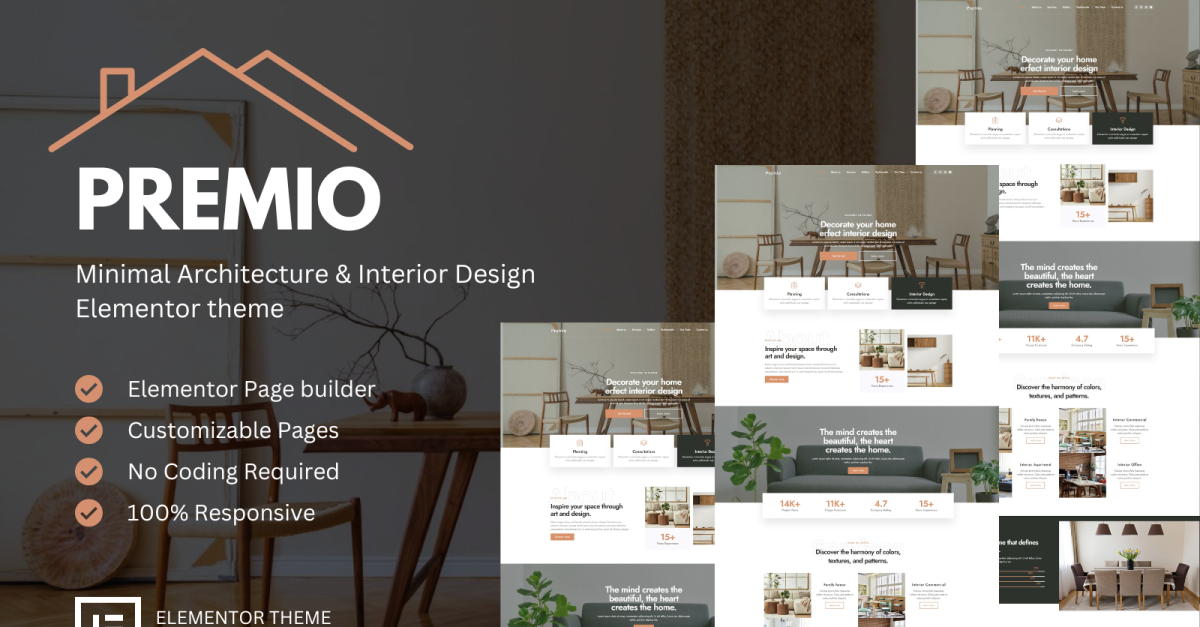 Ev iç tasarımı için özel olarak tasarlanmış, şimdi çok yönlü Elementor sayfa oluşturucu tarafından desteklenen, son teknoloji WordPress web sitesi tasarımı teması Premio ile tanışın. Premio'nun Elementor ile sorunsuz entegrasyonu sayesinde, benzersiz tasarım uzmanlığınızı sergileyen, görsel olarak çarpıcı ve tamamen özelleştirilebilir bir web sitesi oluşturmak için en iyi araç setine sahipsiniz.