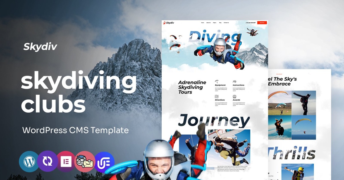 Skydiv - Sky Diving Kulüpleri Çok Amaçlı WordPress Elementor Teması