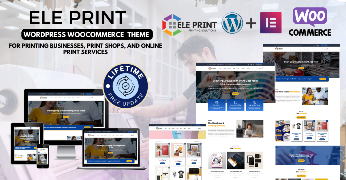 Modern tasarımı ve güçlü WooCommerce entegrasyonuyla Ele-Print, müşterilerinizin masaüstü, tablet veya akıllı telefonlarından hangisini kullanıyor olurlarsa olsunlar tüm cihazlarda sorunsuz bir alışveriş deneyimi yaşamasını sağlar.