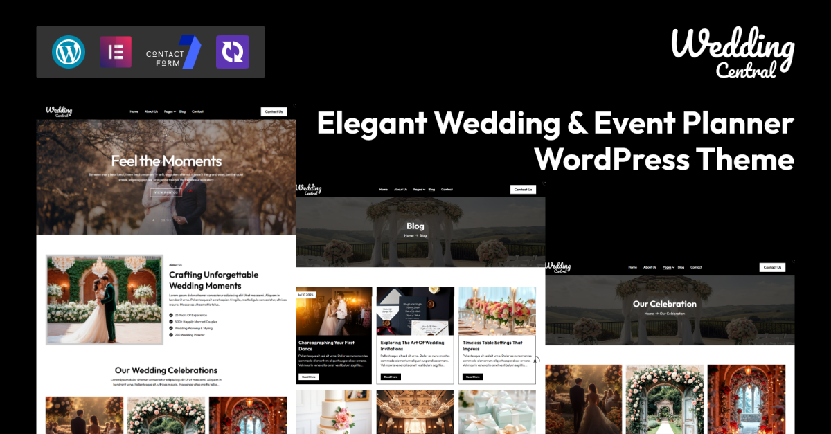WeddingCentral, düğünler, nişan etkinlikleri, gelinlik butikleri ve profesyonel düğün planlamacıları için özel olarak tasarlanmış, şık bir WordPress temasıdır. Yumuşak, romantik estetiği ve özenle hazırlanmış düzeniyle bu tema, büyük gününüzün büyüsünü yansıtan unutulmaz bir dijital deneyim yaratmanıza yardımcı olur.