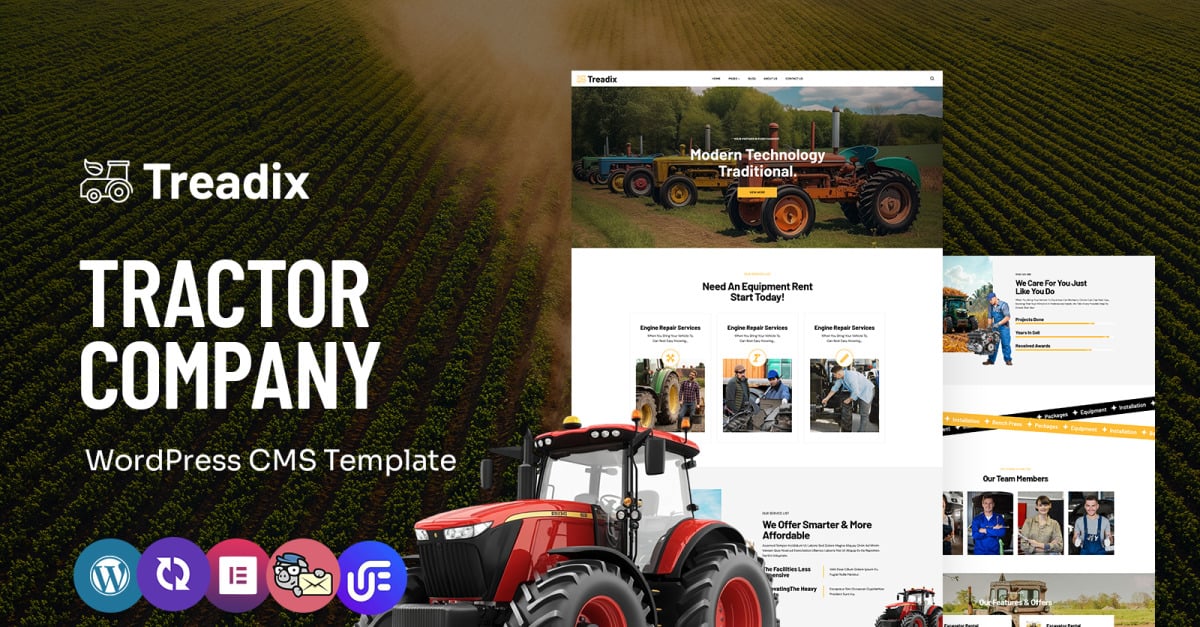Treadix - Çiftçi Aletleri ve Traktör Çok Amaçlı WordPress Elementor Teması