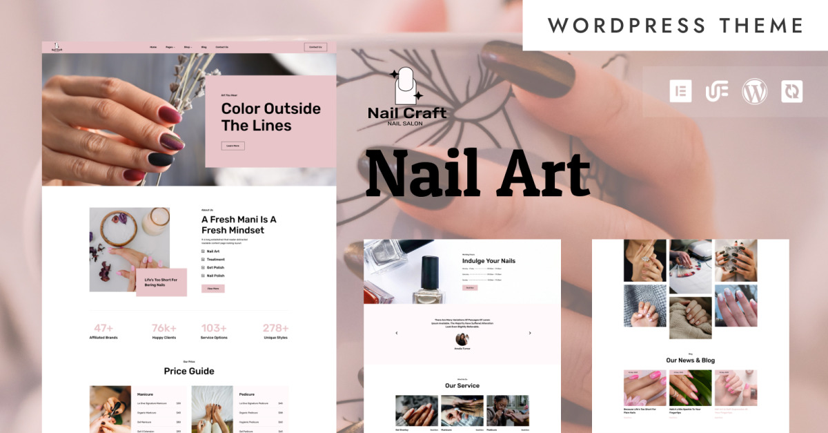 Bu WordPress şablonu, kullanıma hazır ana sayfa düzenleri, hizmet bölümleri, randevu rezervasyon entegrasyonu ve müşteri referansları ile birlikte gelir; böylece güven oluşturabilir ve müşteri tabanınızı zahmetsizce büyütebilirsiniz. Hatta tırnak bakımı ipuçlarını, en son trendleri ve stil ilhamlarını paylaşabileceğiniz bir blog bölümü ekleyerek kendinizi bu alanda gerçek bir uzman olarak konumlandırabilirsiniz.