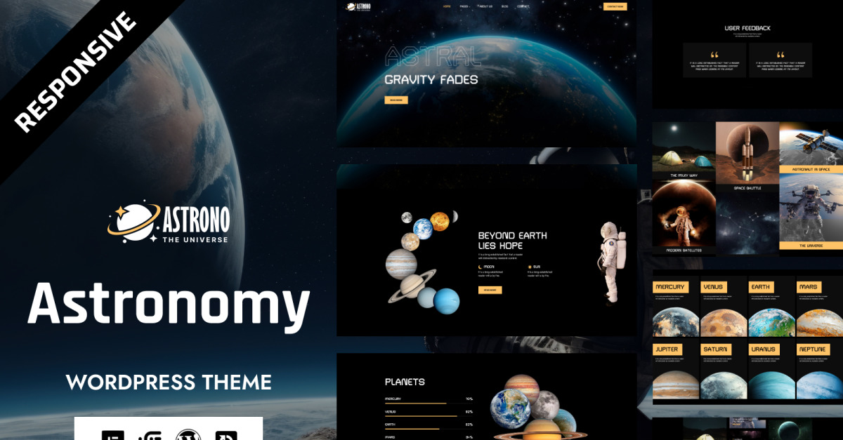 Evrenin harikalarını dünyayla paylaşmak isteyen yıldız gözlemcileri, araştırmacılar, gözlemevleri, uzay ajansları ve bilim eğitimcileri için tasarlanmış, göz alıcı ve yüksek performanslı bir tema olan Astrono Astronomy WordPress Şablonunu keşfedin. Hassasiyetle hazırlanmış ve modern web teknolojileriyle desteklenen bu şablon, zarif tasarımı güçlü işlevsellikle bir araya getirerek size profesyonel ve sürükleyici bir astronomi web sitesi oluşturma özgürlüğü sunar.