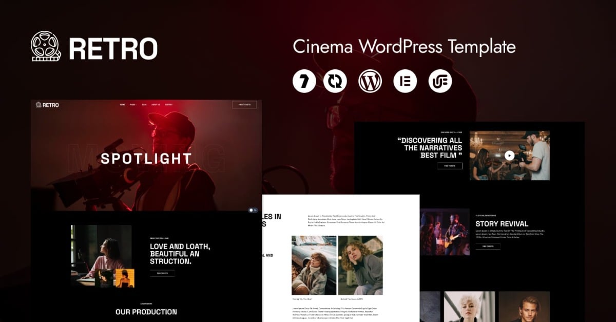 Retro - Film Stüdyosu ve Sinema Çok Amaçlı Minimalist WordPress Elementor Şablonu