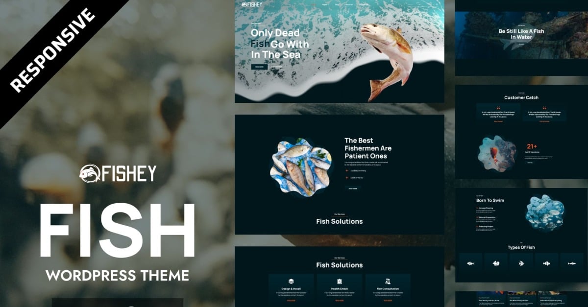 Fishey, balık dükkanları, akvaryum sergileri, doğa koruma vakıfları, mercan araştırma merkezleri ve balıkçılık işletmeleri de dahil olmak üzere farklı denizcilik sektörlerine özel olarak tasarlanmış çok sayıda ana sayfa varyasyonuna sahiptir.