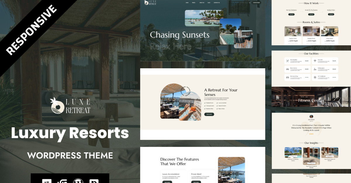 Luxe Retreat Luxury Resort ile çevrimiçi varlığınızı güçlendirin, yüksek değerli misafirler çekin ve ziyaretçileri sadık müşterilere dönüştürün. Bu WordPress şablonu, lüks yaşamın gerçek özünü yansıtmak üzere tasarlanmıştır.