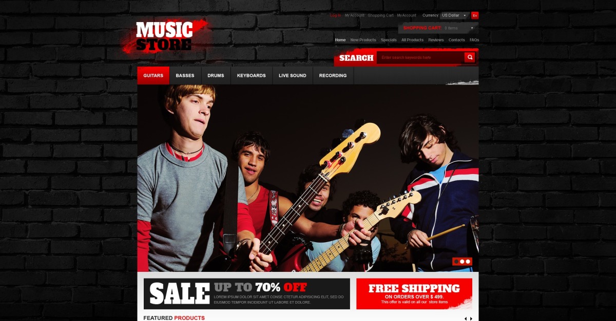 Büyük, yüksek çözünürlüklü resimler her zaman müşterilerin dikkatini çeker ve kaydırıcımız da bir istisna değildir. Sıra dışı logo ve arka plandaki koyu renkli tuğla dokusu, mağazayı diğerlerinden ayırır. Öne çıkan ürünler, daha verimli ve sürükleyici olan bir kaydırıcıda sunulur. Aşınmış öğeler, tema yönelimiyle ilgilidir.