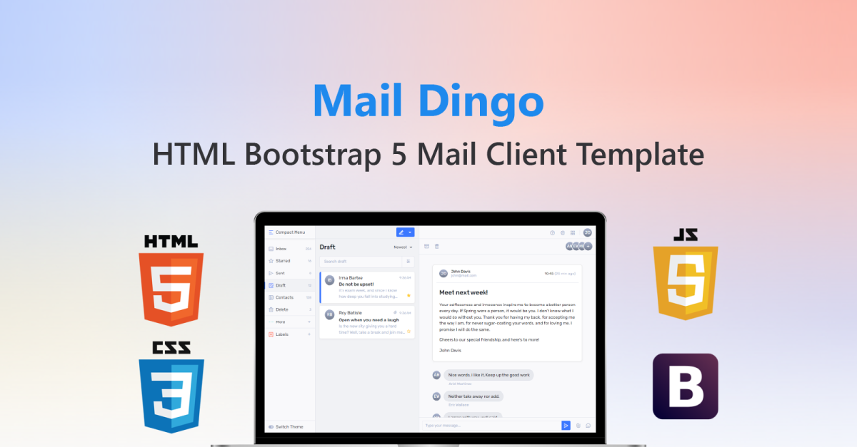 Mail Dingo – HTML-шаблон програми Bootstrap 5 поштового клієнта