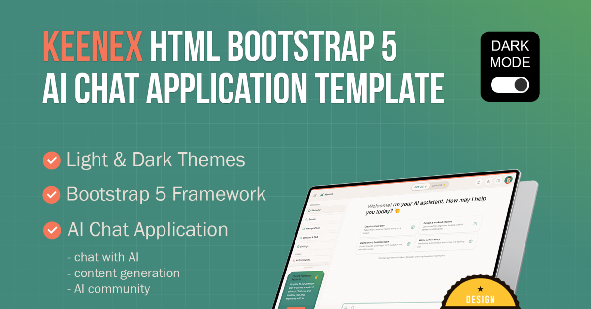 KeeneX – HTML-шаблон програми AI Chat Bootstrap 5