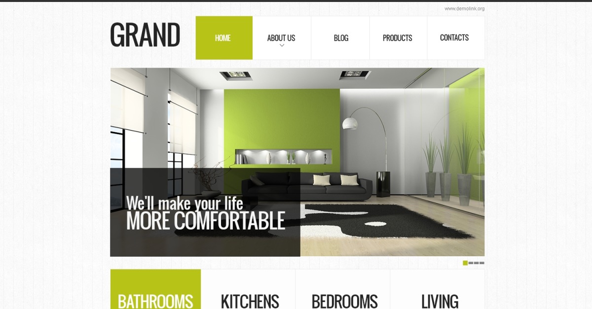 Цей гарний мінімалістичний шаблон чудово відтворить дух вашої студії дизайну інтер’єру. Стильний сірий фон окреслює елегантні елементи, такі як фотографії фешенебельних кімнат, розділ вмісту та інше. Розкладки адаптивні, тобто розтягуються відповідно до розміру екрана: спеціально для власників кишенькових пристроїв.