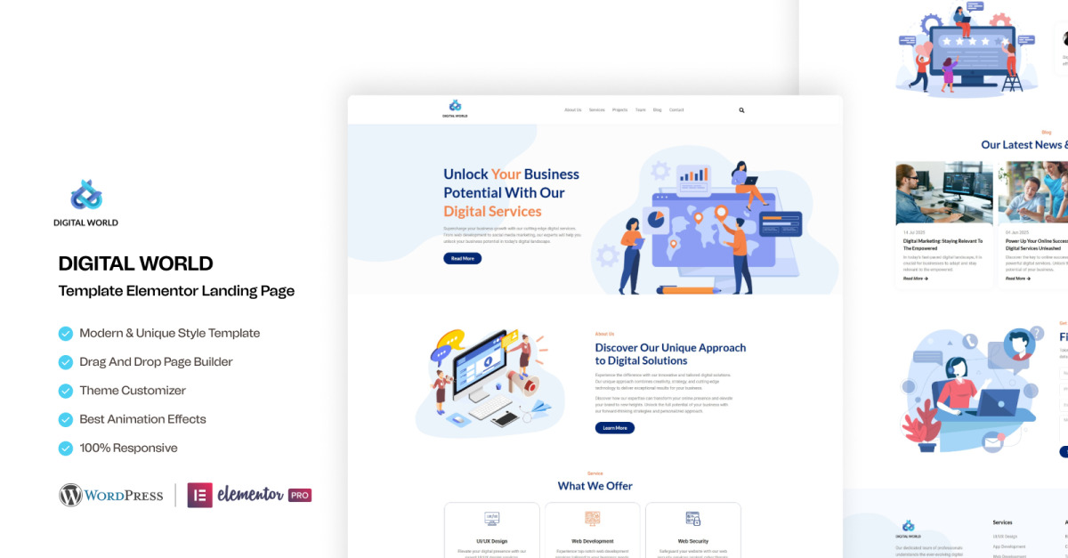 Цифровий світ – Шаблон цільової сторінки WordPress Elementor для послуг цифрового маркетингу