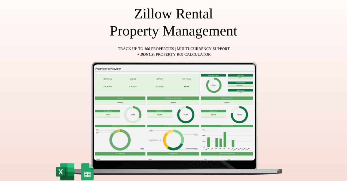 Управління нерухомістю Zillow | Відстеження доходів та витрат | Шаблони для Excel та Google Таблиць