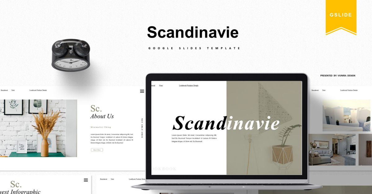 Це **Scandinave | Шаблон Google Slides** - Отримайте його зараз!, чудовий шаблон Google Slides для будь-яких ділових або особистих потреб.