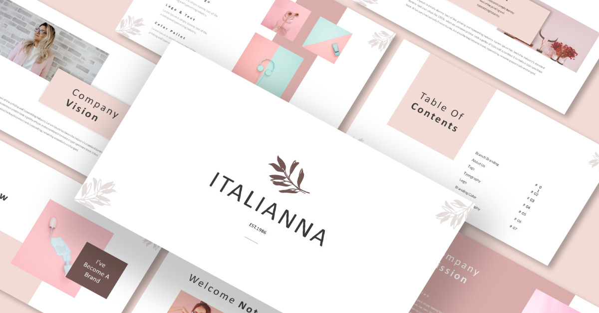 Інструкції щодо бренду Italianna Google Slide Template — це інструкція щодо бренду компанії та шаблон презентації посібника, який дає вам ефективний спосіб брендингу вашого бізнесу, має простий дизайн, чітку, мінімалістичну та сучасну презентацію. Якщо ви шукаєте професійний шаблон, цей шаблон може стати вашим вибором.