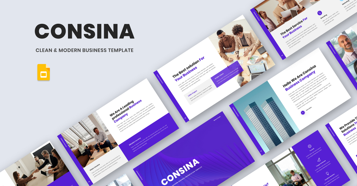 Представляємо **Consina - шаблон Google Slide для чистого та сучасного бізнесу**