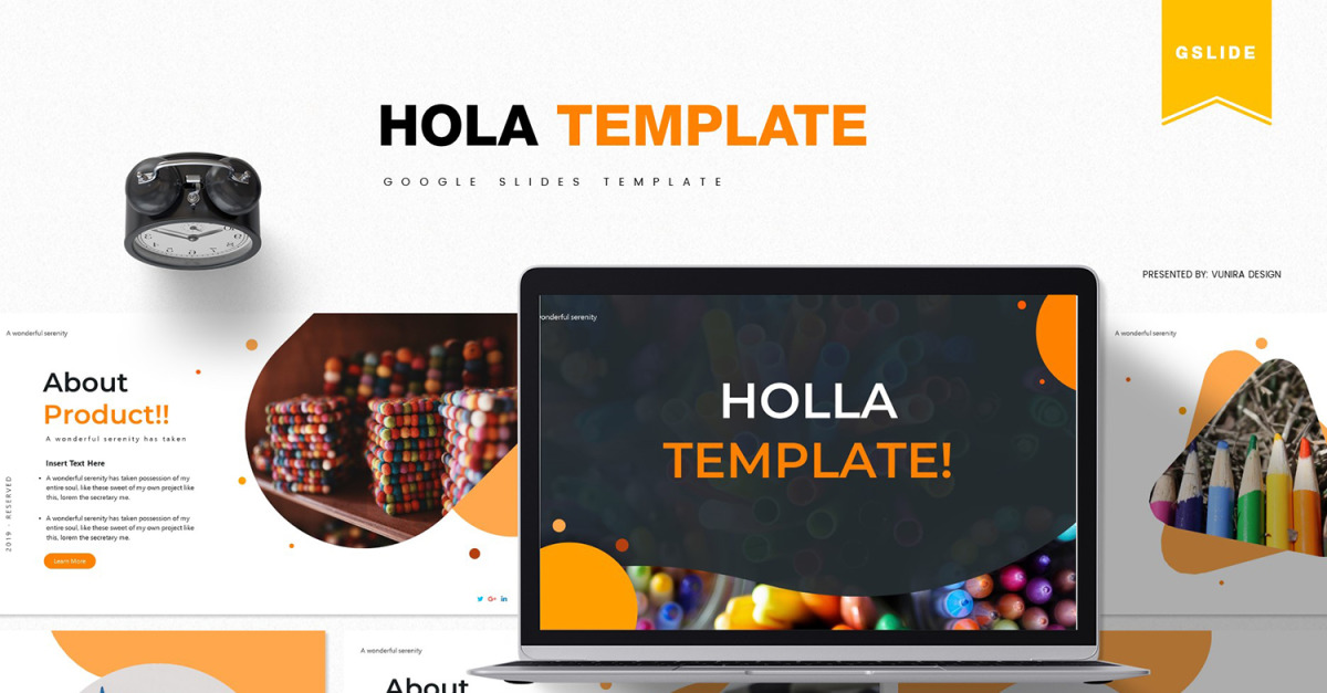 Це **Holla | Шаблон Google Slides** - Отримайте його зараз!, чудовий шаблон Google Slides для будь-яких ділових або особистих потреб.