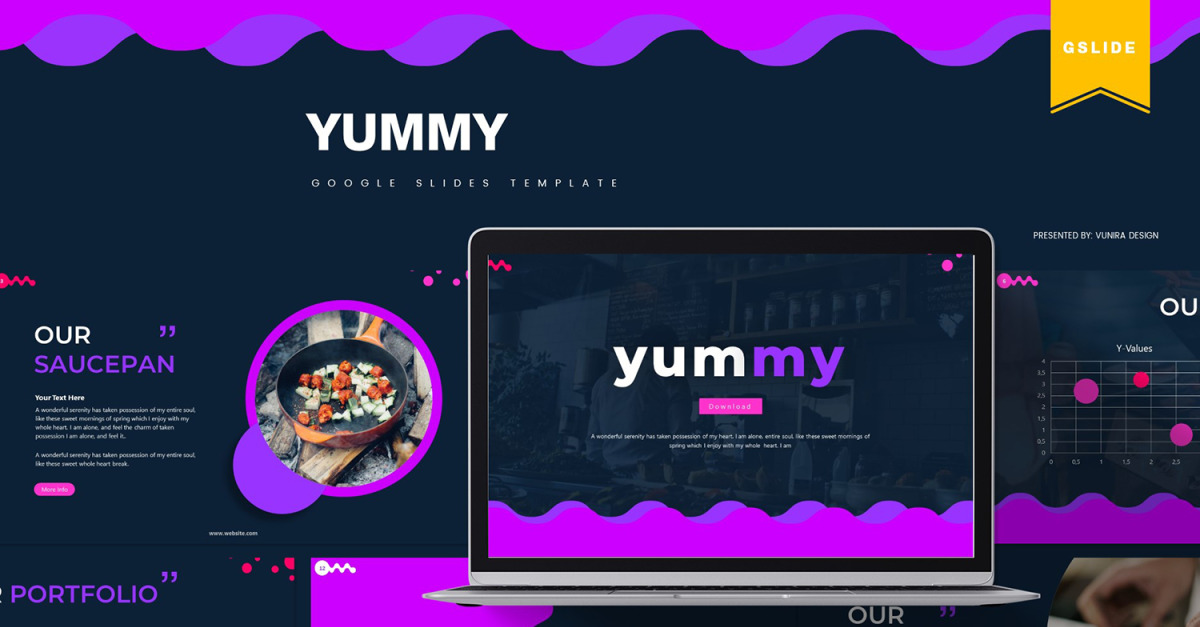 Це **Смачно | Шаблон Google Slides** - Отримайте його зараз!, чудовий шаблон Google Slides для будь-якого бізнесу чи особистих потреб.