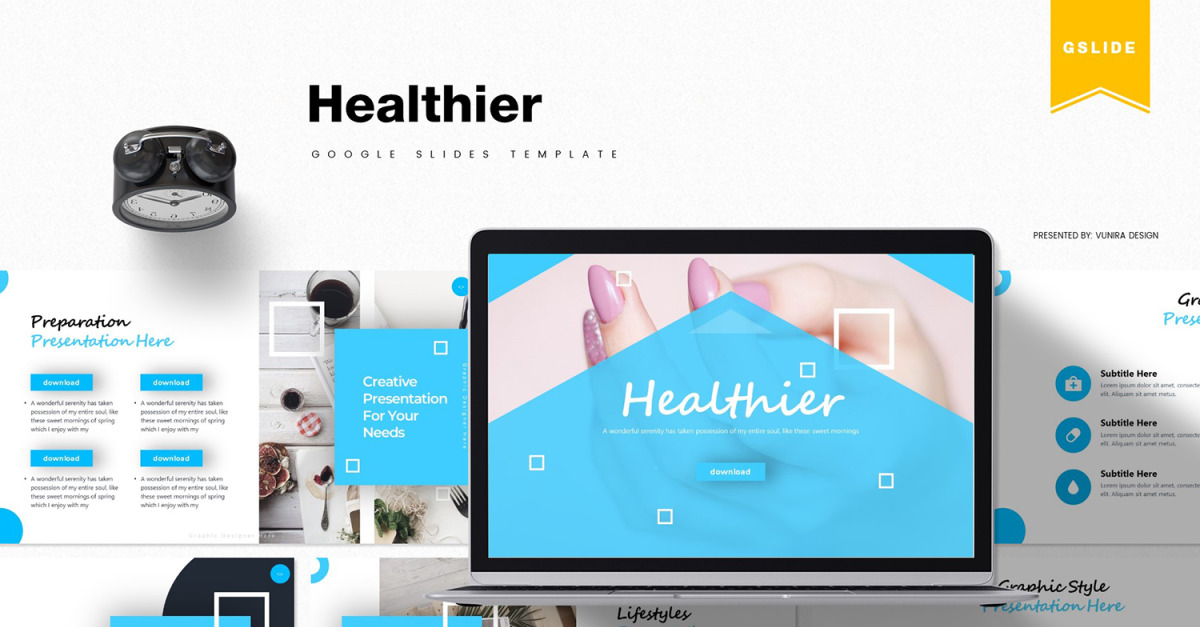 Це **здоровіше | Шаблон Google Slides** - Отримайте його зараз!, чудовий шаблон Google Slides для будь-яких ділових або особистих потреб.